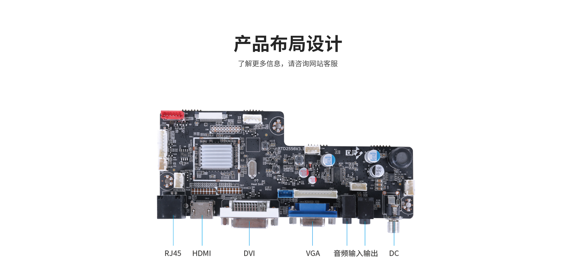 1、自動識別信號源 、信號通道 2、支持多種語言,默認英文 3、ESD防護電路設計,可抗干擾,防靜電 4、 PCB采用綠色環保基材 5、豐富的擴展接口、 支持VGA、HDMI、DVI