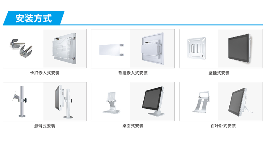 支持嵌入式安裝、壁掛式安裝、懸臂式安裝,桌面式安裝和百葉臥式安裝,應(yīng)用場(chǎng)景多,滿(mǎn)足醫(yī)療環(huán)境下對(duì)不同尺寸和不同安裝方式的需要。