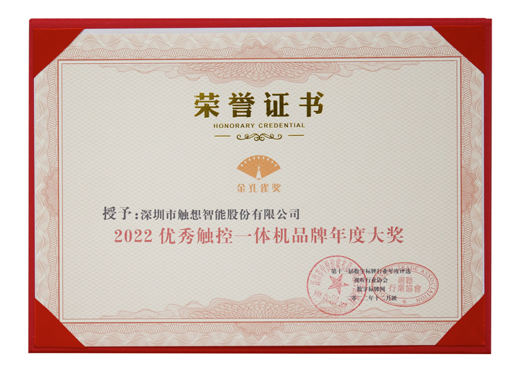觸想智能榮獲2022優秀觸控一體機品牌年度金孔雀獎