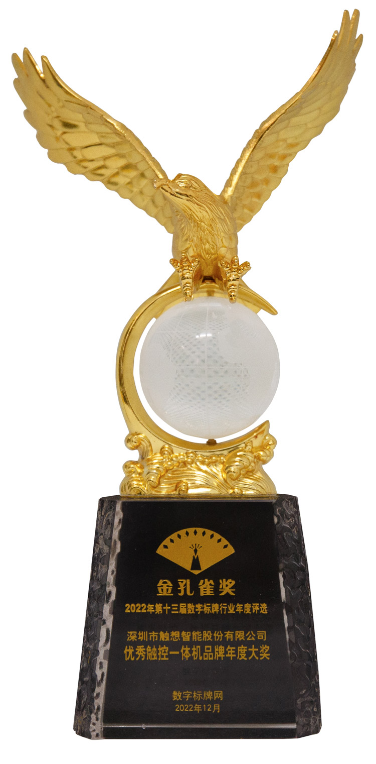 大會同期頒發了數字標牌行業最高榮譽“金孔雀獎“,經過近三個月、數百家優秀企業的激烈角逐,觸想智能憑借在創新引領,產品美譽、市場認同方面的卓越表現,實力斬獲金孔雀獎——2022優秀觸控一體機品牌年度大獎。