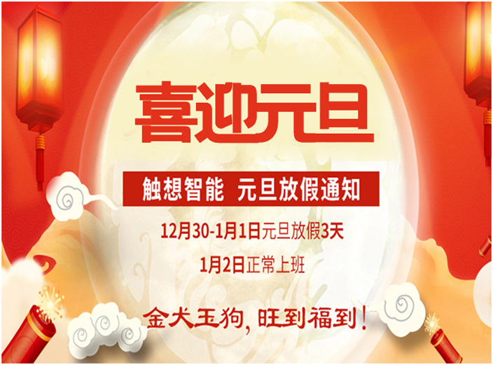 2018元旦節(jié)假期將至,根據(jù)《國務(wù)院辦公廳關(guān)于2018年部分節(jié)假日安排的通知》及結(jié)合觸想智能公司實際情況,針對2018年“元旦”節(jié)放假時間為2017年12月30日—2018年1月1日放假三天,1月2日正常上班。