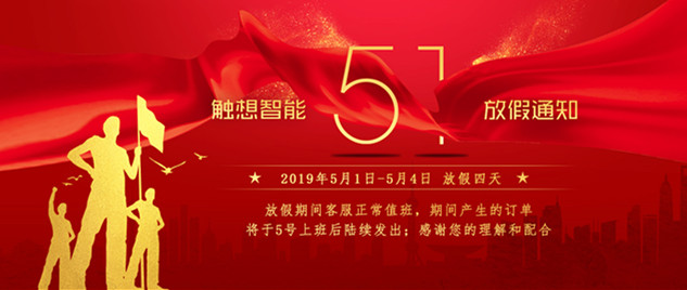 五一假期將至,根據國家法定假期的規定,并結合公司的實際情況,觸想智能針對2019年“五一”放假時間為2019年5月1日-5月4日,放假4天,5月5日正常上班。 放假期間正常接單,5號陸續發貨,如有不便之處,敬請諒解,感謝您的理解與支持! 下一篇:五一小長假,在無人值守的情況下如何保證生產率? 上一篇:祝賀觸想智能香港(春季)電子展取得圓滿成功