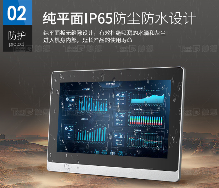 產品面板采用純平無縫隙設計,可高達IP65防塵防水等級,增強型面板具備強防摔性、抗沖擊性、抗磁電干擾性、可塑性、導熱性等特征,能適應各種惡劣環境,延長產品使用壽命。