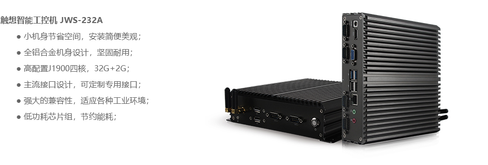 而由于工業(yè)環(huán)境相對較惡劣,對工業(yè)機器人控制系統(tǒng)的硬件要求更為嚴苛,普通的硬件是無法勝任的,只有工控級的工業(yè)電腦硬件才能為工業(yè)機器人提供專業(yè)硬件方面的產(chǎn)品方案支持。觸想智能嵌入式電腦JWS-232A 這款基于 Intel 芯片組、支持 i7/i5/i3 處理器、板載4G DDR3 內(nèi)存,6xCOM 口,6xUSB 口、1x HDMI顯示接口等支持定制多種接口。作為能在惡劣環(huán)境中沖鋒陷陣的工業(yè)級嵌入式電腦,觸想智能 JWS-232A 工控機采用 PWM 調(diào)速風扇及全鋁機殼條幅格狀和 3 根銅管導相結(jié)合散熱設(shè)計,抗破壞能力強+獨有減震設(shè)計,適應(yīng)寬溫,能在粉塵大、濕度高等惡劣環(huán)境條件下穩(wěn)定運行,可靠性高。1. 使整個生產(chǎn)的吞吐量得到最全面、安全、快捷的保障;